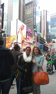 Meijjän hotelli oli siis aivan siinä Times Squarella (ja sen oli kyl hintanenki) ja niiiiiiiiin paljon ihmisiä joka paikassa ja melkein kaikki pukeutuu ihanan muodikkaasti, tai sanoisinko eurooppalaisesti verrattuna Virginian solmuvärjättyihin paitoihin ja urheilushortseihin sekä asukokonaisuuden kruunaaviin lenkkareihin (ne on kyl mukavat täytyy myöntää) No NYCissä minäkin jaksoin vähän panostaa ja hyviä vaateostoksiakin tuli tehtyä sillä koko sunnuntai vietettiin shoppailemalla! Times Square on tosi täynnä ihmisiä ja on tosiaan "The city that never sleeps". Ulkomaalasia ja turisteja on tosi paljon ja törmäsin jopa suomalaiseen pariskuntaan!